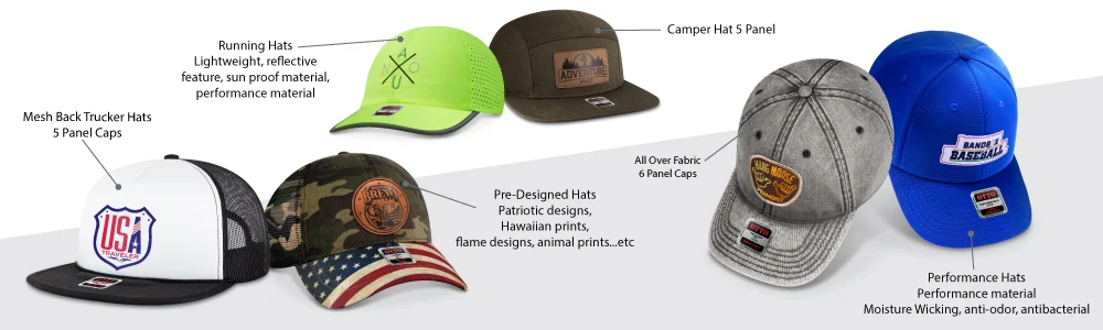 These are the triangular sections of fabric that are sewn together to form the crown. Most hat designs use 5, 6, or 7 panels.